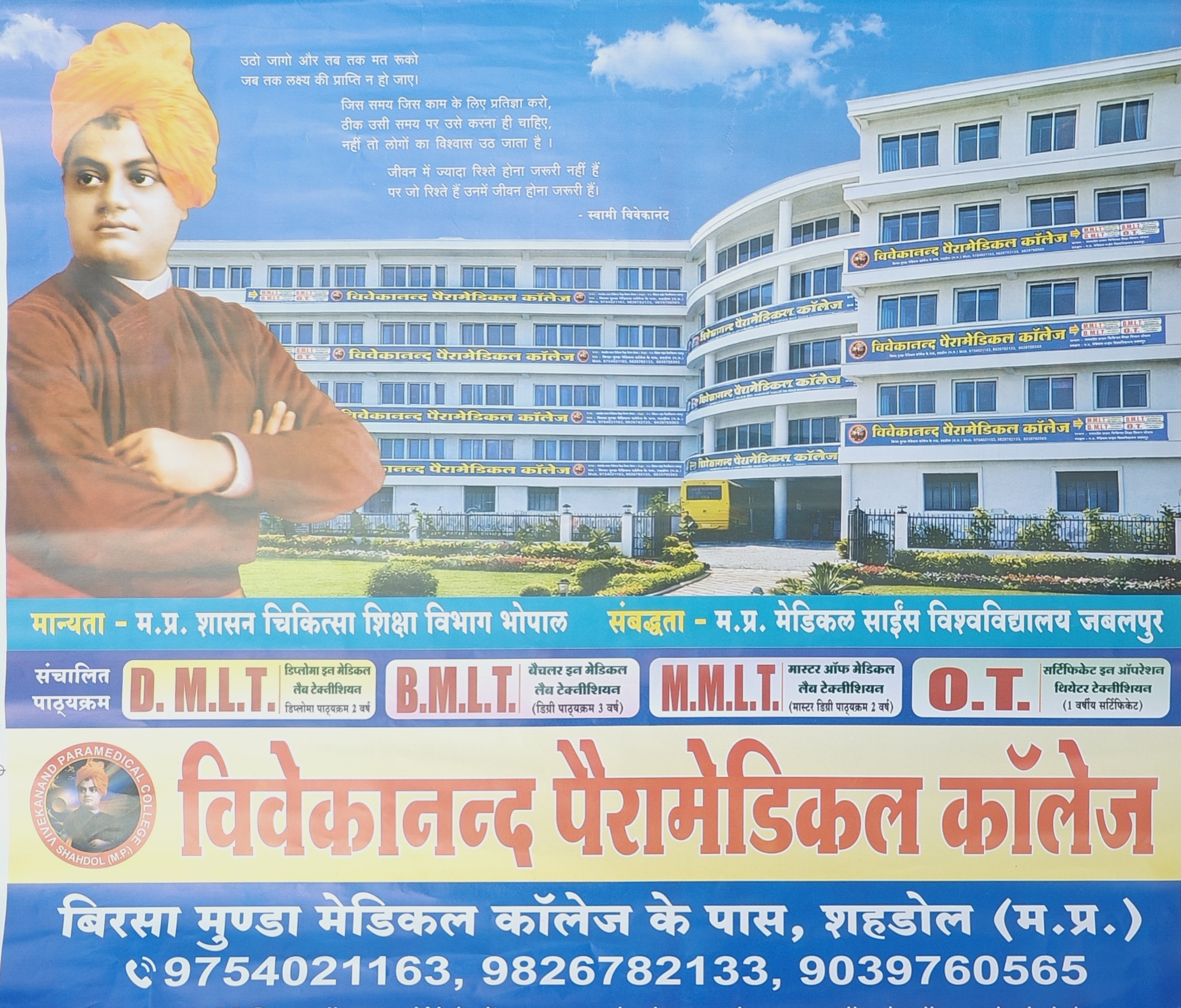 शहडोल। जिले में स्वास्थ्य शिक्षा के क्षेत्र में एक महत्वपूर्ण पहल करते हुए विवेकानंद पैरामेडिकल कॉलेज शहडोल अब अपने नए और अत्याधुनिक परिसर में संचालित होना प्रारंभ हो गया है।…