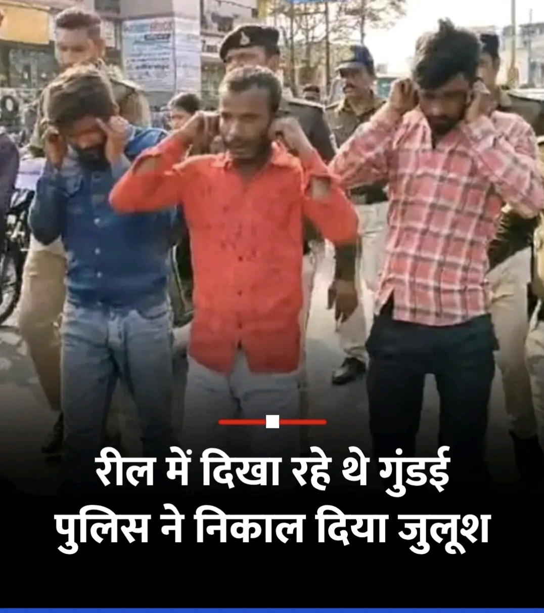 मध्य प्रदेश के छिंदवाड़ा में अजीब स्थिति देखने को मिली है. यहां चार युवक अपने कान पकड़कर और नारे लगाते चल रहे थे कि ‘गुंडागर्दी पाप है, पुलिस हमारी बाप है…’. इनके साथ साथ पुलिस भी चल रही थी. यह सभी लोग देहात थाने से निकलकर कोर्ट तक गए. दरअसल यह चारो लोग अपनी धौंस जमाने के लिए रील बना रहे थे और इसमें अपनी गुंडई दिखा रहे थे. इनकी रील सोशल मीडिया पर वायरल होने पर हरकत में आई पुलिस ने इनके खिलाफ केस दर्ज किया और अरेस्ट कर थाने से कोर्ट तक जुलूश निकालते हुए इनकी सारी हेकड़ी निकाल दी…