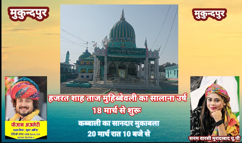 शहेनशाहे मध्यप्रदेश कहे जाने वाले हज़रत शाह ताज बाबा मुकुन्दपुर का सालाना उर्स 18 मार्च दिन मंगलवार को मनाया जायेगा पहला कुल सुबह बारगाहे शाहताज संदल पेश कर गुस्ल फातिमा दुरूदो सलाम के बाद पहले कुल का होगा आगाज तीन दिन लगातार जियारत मन्दो का तांता लगा रहेगा फातिहा चादरपोशी के साथ रात में मीलाद का होगा कार्यक्रम जिसमे बाहर से आये आलिमों की तकरीर और नातिया कलाम पढ़ें जायेंगे 19 मार्च दिन बुधवार को मनाया जायेगा हज़रत शाहताज बाबा का दूसरा कुल सुबह अकीदत मंदों की चादरों का सैलाब देखने को मिलेगा पूरे दिन चादर पोसी दुरूदफातिहा लगंरे आम का दौर चलेगा साथ साम ढलते ही दरबार शाहताज के मजार के सामने महफिले समां का होगा आगाज पूरी रात सरकार के चाहने वाले बाहर से आये मुकर्रिरो और उलमायेकेराम के नातिया कलाम तकरीर और सूफियाना कब्बाली का लुत्फ उठाएंगे और फैजेआब होंगे 20 मार्च दिन बृहस्पतिवार को मनाया जायेगा बाबा का तीसरा कुल हजारों की तादाद में अकीदतमंद दरवारे शाहताज की चौखट में अपनी हाजरी लगाएंगे पूरे दुरूदफातिहा और दरबार में अकीदतमंदो की चादरपोशी का सैलाब देखने को मिलेगा और रात 10 बजे से होगा कब्बाली का शानदार मुकाबला जिसमें बाहर से आये कब्बाल फैजान रजा अजमेरी जयपुर राजस्थान और कब्बाला सनम वारसी मुरादाबाद यूं .पी के बीच होगा कब्बाली का सानदार मुकाबला कार्यक्रम में क्षेत्रीय विधायक मंत्री सभी वारगाहे शाहताज में माथा टेकेंगे और कार्यक्रम में सिरकत करेंगे कमेटी अध्यक्ष मोहम्मद मोहसिन ने बताया की इस वर्ष सरकार का उर्ष पवित्र माह रमजान के मुबारक महीने में होगा हम सभी के लिए सरकार के महमानो के खिदमत का मौक़ा मिला है कमेंटी ने पहले ,दूसरे, तीसरे कुल तक बावा के उर्ष में पहुंचने वाले मेहमानों के लिए सेहरी, इफ्तार ,और खाने का पूरा इंतजाम कमेटी की तरफ से किया जायेगा हमरी कमेटी उर्ष में की किसी तरह की महमानो को तकलीफ़ ना इसका पूरा ख्याल रखेगी मेले के चारों तरफ सीसीटीवी कैमरे तैनात किए जाएंगे साथ ही मेले के चारों तरफ सतत पुलिस की निगरानी बनी रहेगी बाहर से आये महमाने को पार्किंग स्थल से दरगाह तक आने में तकलीफ़ ना हो इस बात का ख्याल रखते हुए कमेटी की तरफ से फ्री आटो रेक्सा सेवा का इंतजाम किया गया है हजरत शाह ताज मुहिब्बेवली एक पाये दर्जे के बुजुर्ग है आप के इसारो से जहां चबूतरा चल पड़ा आप की गाय ने शेर को निगल लिया था ये लोक कथाएं क्षेत्र में बाबा के चमत्कार की प्रचलित है जहां उर्ष में भारत के कोने-कोने से लोग बाबा की बारगाह में पहुचते है फैजेआब होते हैं दरबार में मुंडन की है रस्म लोगों का कहना है की बाबा की चौखट में सही मन से मांगी हुआ दुआं पूरी होती है जिनकी औलादें नहीं होती वो यहां पहुंच कर मन्नत क