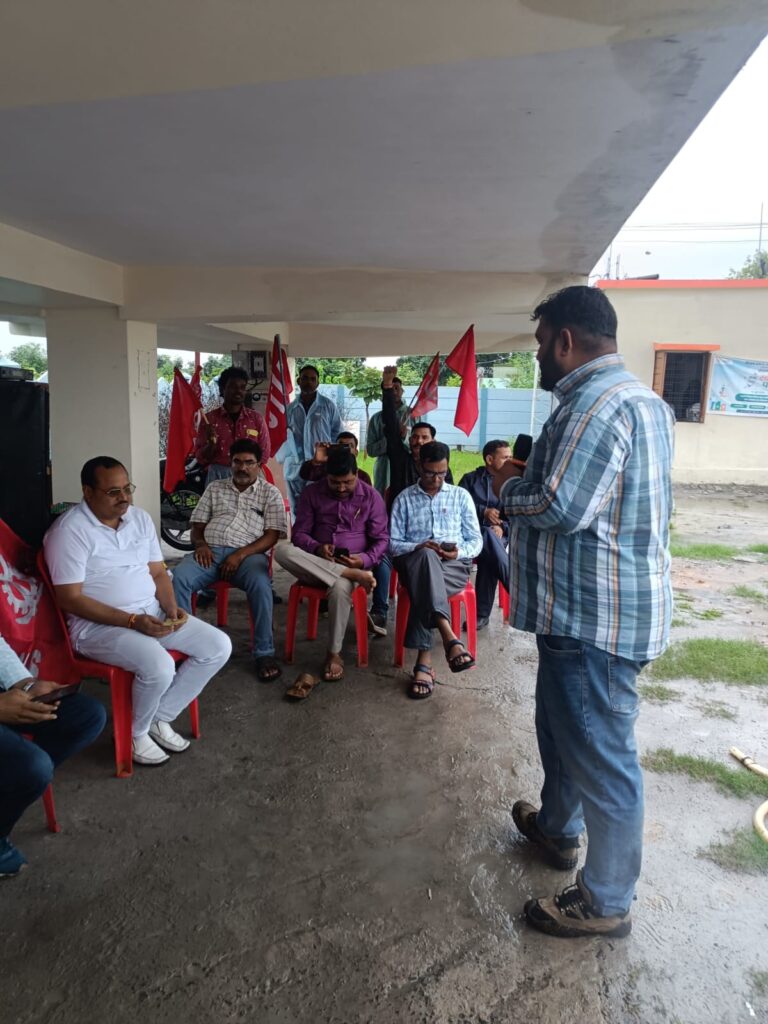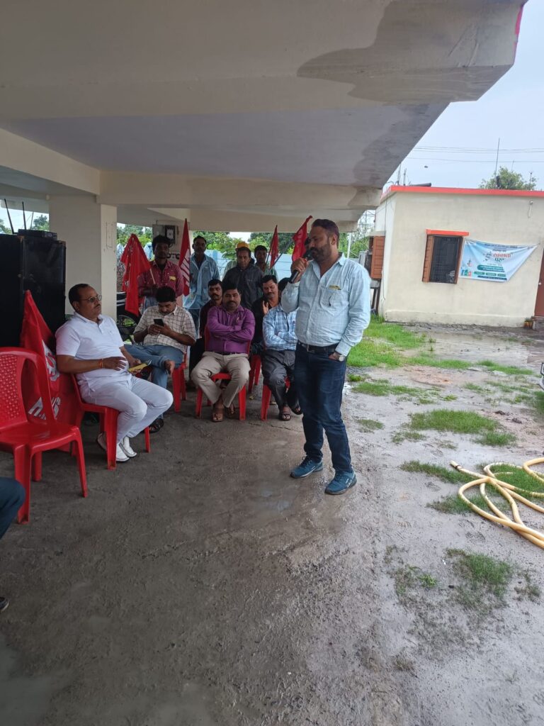 इकाई की ओर से राकेश गुप्ता, गौरव गुरिया और कमलेश साकेत ने भी श्रमिकों को संबोधित करते हुए 9 जुलाई की राष्ट्रव्यापी हड़ताल को सफल बनाने की अपील की।
