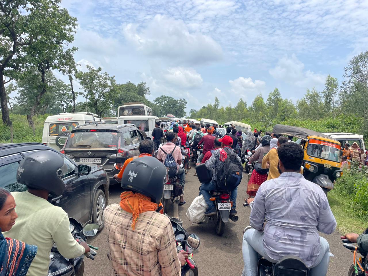 अत्यधिक भीड़ और अव्यवस्थित ट्रैफिक प्रबंधन के चलते श्रद्धालुओं को जलेश्वर महादेव के दर्शन के लिए भारी मशक्कत करनी पड़ रही है। संकरे तिराहे पर एक साथ सैकड़ों वाहनों के पहुंचने से मार्ग पूरी तरह अवरुद्ध हो गया। जाम में फंसे यात्रियों ने बताया कि प्रशासन द्वारा समय रहते ट्रैफिक नियंत्रण की व्यवस्था नहीं की गई, जिससे स्थिति और अधिक बिगड़ती चली गई।