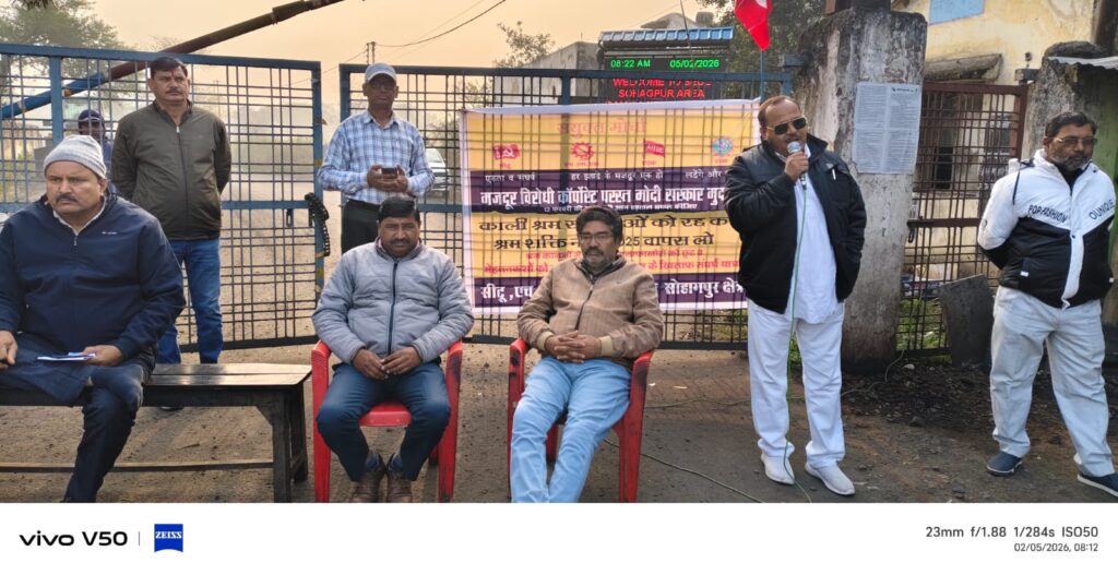 सोहागपुरदामिनी माइन के मुख्य द्वार पर गुरुवार सुबह संयुक्त मोर्चा एचएमएस–इंटक–एटक–सीटू द्वारा 12 फरवरी को प्रस्तावित राष्ट्रव्यापी हड़ताल को लेकर जोरदार गेट मीटिंग आयोजित की गई। यह बैठक सुबह 7:30 बजे से 9:30 बजे तक चली, जिसमें बड़ी संख्या में मजदूरों और कर्मचारियों ने भाग लेकर एकजुटता का संदेश दिया।गेट मीटिंग की अध्यक्षता कामरेड राजेश चंद्र शर्मा ने की, जो कंपनी वेलफेयर बोर्ड मेंबर होने के साथ-साथ एटक के सोहागपुर क्षेत्रीय सचिव भी हैं। बैठक का मंच संचालन एसएमएस से मनोज द्विवेदी ने प्रभावशाली ढंग से किया।सभा को संबोधित करते हुए एटक के एरिया अध्यक्ष रावेंद्र शुक्ला ने कहा कि आज मजदूर वर्ग लगातार बढ़ती महंगाई, निजीकरण और श्रम कानूनों में बदलाव के कारण गंभीर संकट से गुजर रहा है। सरकार और प्रबंधन की नीतियां श्रमिक विरोधी होती जा रही हैं, जिसके खिलाफ एकजुट संघर्ष ही एकमात्र रास्ता है।एचएमएस के एरिया अध्यक्ष एवं एरिया सेफ्टी बोर्ड मेंबर राकेशकांत पाण्डेय ने खदानों में सुरक्षा व्यवस्था पर चिंता जताते हुए कहा कि उत्पादन बढ़ाने के दबाव में मजदूरों की जान को खतरे में डाला जा रहा है। उन्होंने कहा कि सुरक्षा उपकरणों की कमी और मानकों की अनदेखी गंभीर हादसों को न्योता दे रही है।सीटू के राज्य सचिव एवं सोहागपुर क्षेत्रीय सचिव अरुण गौतम ने केंद्र सरकार की नीतियों पर तीखा हमला बोलते हुए कहा कि सार्वजनिक क्षेत्र की कंपनियों को कमजोर कर निजी हाथों में सौंपने की साजिश चल रही है। इससे न सिर्फ रोजगार घटेगा बल्कि श्रमिकों के अधिकार भी समाप्त हो जाएंगे।सीटू क्षेत्रीय वेलफेयर बोर्ड मेंबर धीरेंद्र पांडेय ने मजदूरों से अपील की कि वे किसी भी दबाव में आए बिना 12 फरवरी की हड़ताल को पूरी मजबूती से सफल बनाएं, ताकि सरकार और प्रबंधन तक श्रमिकों की आवाज मजबूती से पहुंचे।बैठक में जानकारी देते हुए विनोद शर्मा एचएमएस एरिया सेफ्टी बोर्ड मेंबर ने विस्तार से बताया कि यह हड़ताल मजदूरों की 17 सूत्रीय मांगों को लेकर की जा रही है, जिसमें स्थायी रोजगार, समान काम के लिए समान वेतन, पुरानी पेंशन योजना की बहाली, महंगाई पर नियंत्रण, निजीकरण पर रोक और खदानों में सुरक्षा व्यवस्था मजबूत करने जैसी प्रमुख मांगें शामिल हैं। उन्होंने कहा कि यदि इन मांगों को अनसुना किया गया तो आने वाले समय में आंदोलन और तेज किया जाएगा।गेट मीटिंग के दौरान मजदूरों में जबरदस्त उत्साह देखने को मिला। “मजदूर एकता जिंदाबाद”, “हड़ताल सफल बनाओ” जैसे नारों से पूरा क्षेत्र गूंज उठा। वक्ताओं ने स्पष्ट किया कि यह लड़ाई सिर्फ एक दिन की नहीं, बल्कि मजदूरों के भविष्य और अधिकारों की रक्षा की लड़ाई है।अंत में सभी संगठनों ने एक स्वर में 12 फरवरी की हड़ताल 